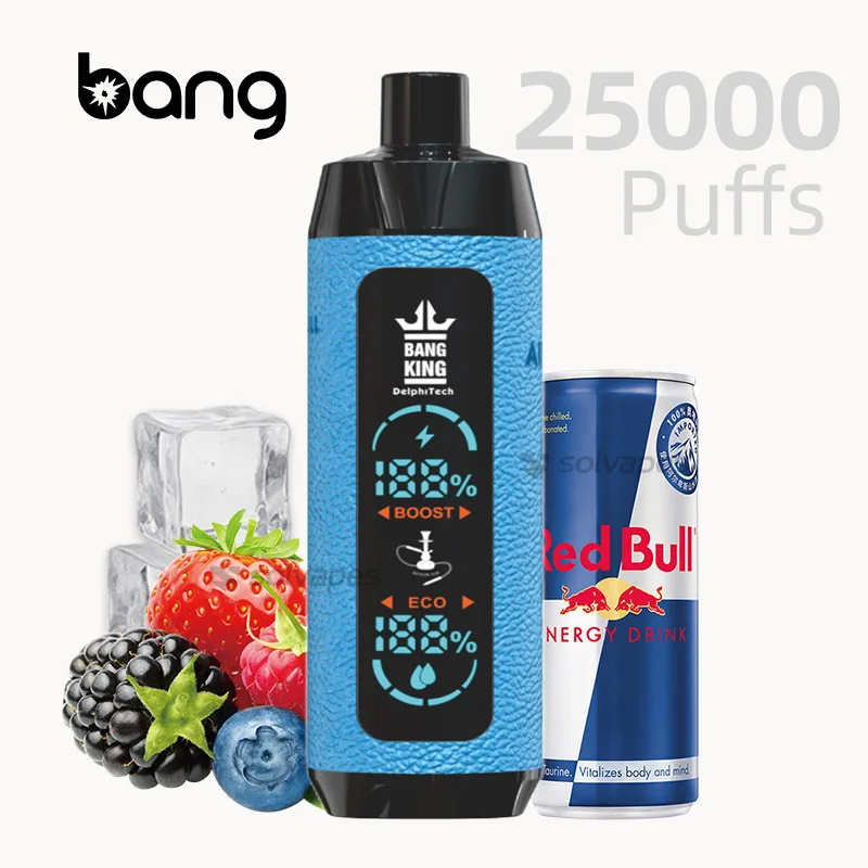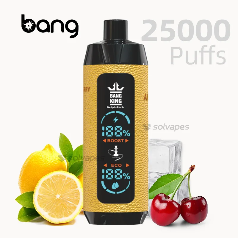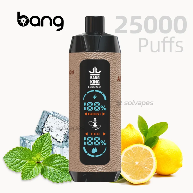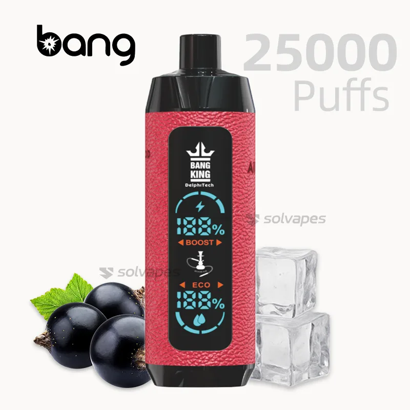 BangKing Shisha 25K – red design, 25,000 puffs, LED display, stylish leather texture.