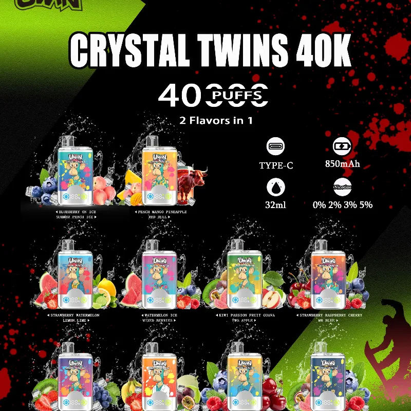 Explore 15 bold dual-flavor combos in the UWIN Crystal Twins 40K disposable vape series.